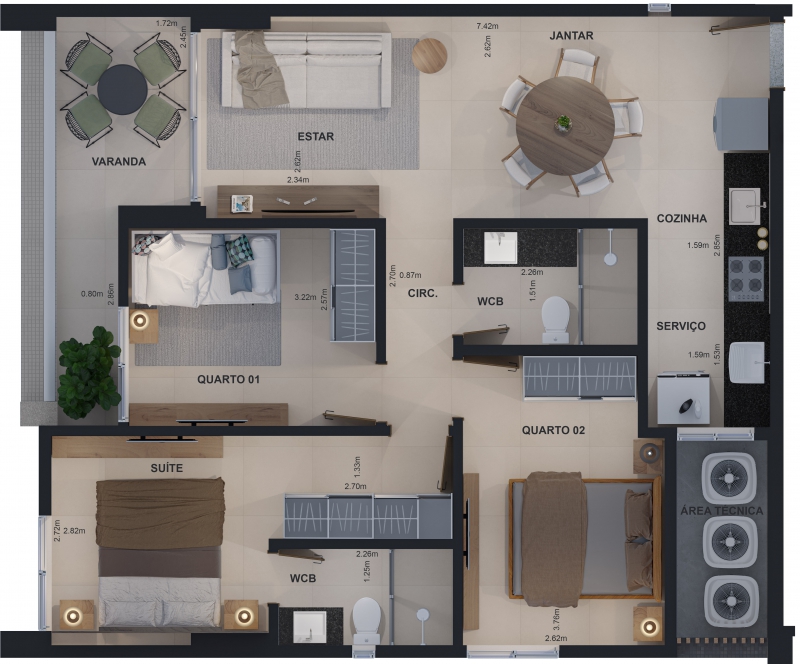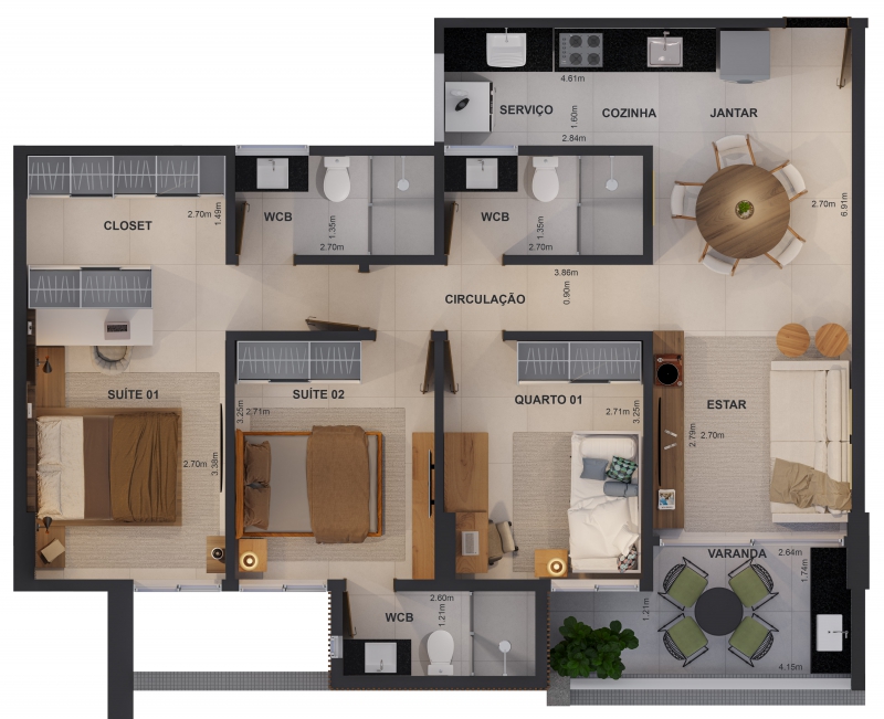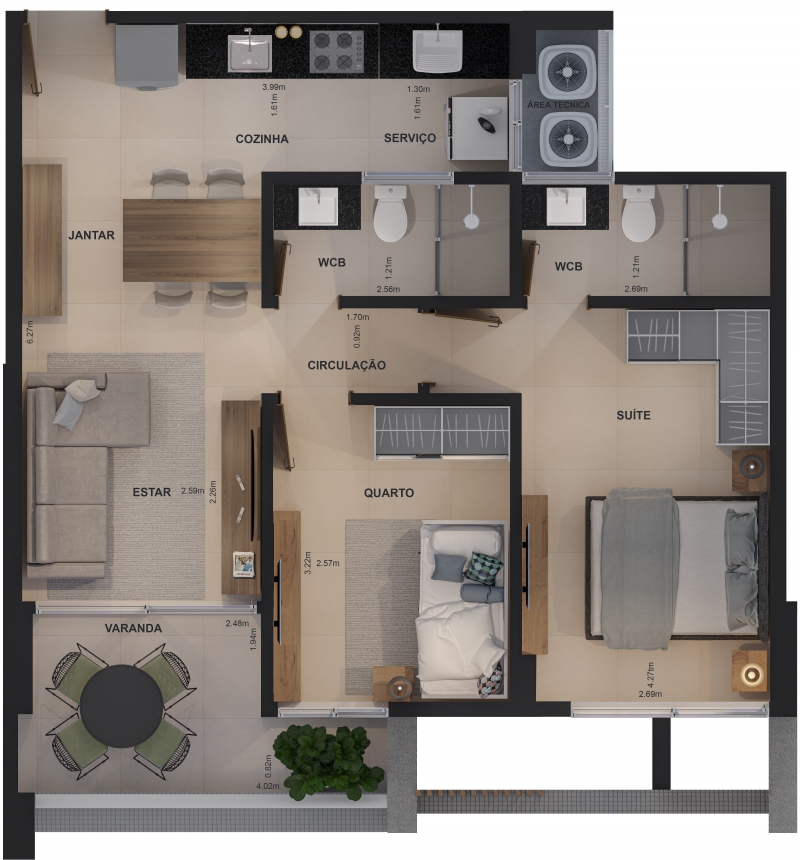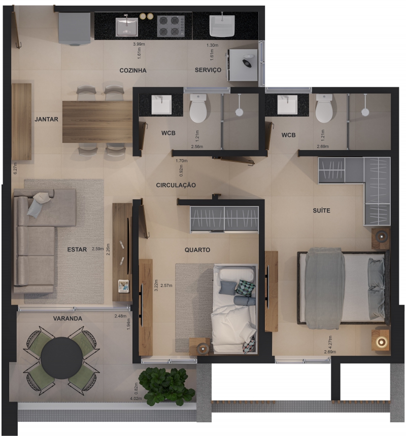 - Apartamentos com: 02 ou 03 quartos